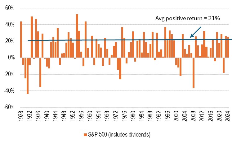 Exhibit 6: S&P 500 Index annual returns (1928-2024)