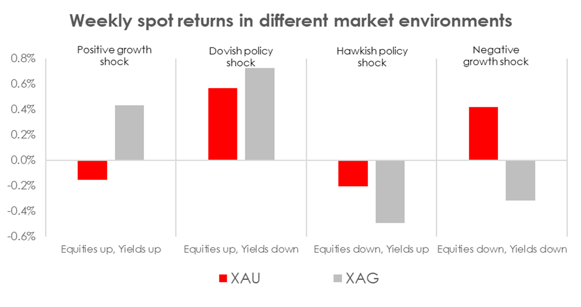 Silver has recently outperformed driven by hopes of a soft landing. However, gold could outshine silver if the global risk backdrop sours on stagflation fears. Our forecast favours gold over silver. Unlike gold, silver has numerous industrial uses and tends to do better in a rising equities environment, which usually corresponds to positive growth surprises or dovish policy shifts. Conversely, silver typically underperforms gold when the risk backdrop sours, especially when markets start to price in higher recession probabilities with lower yields and lower equities.